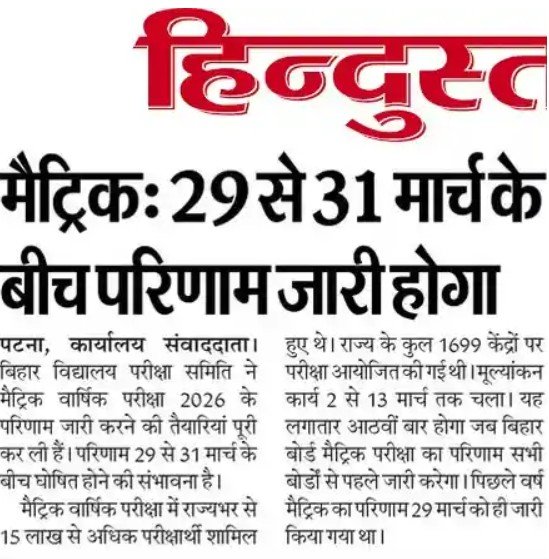 दोस्तो आज के इस लेख में हमने आपको Bihar Board 10th Result 2026 के बारे में संपूर्ण जानकारी प्रदान की है मै आशा करता हु कि आपको यह जानकारी पसंद आएगी यदि आपको यह जानकारी पसंद आती है, तो इस लेख को अपने दोस्तों और जानने वालो के साथ जरूर शेयर करें और यदि आपके मन में इस लेख से संबंधित कोई भी प्रश्न या सुझाव हो तो उसे भी आप नीचे दिए गए कॉमेंट बॉक्स में लिखकर हमारे साथ जरूर शेयर करें।