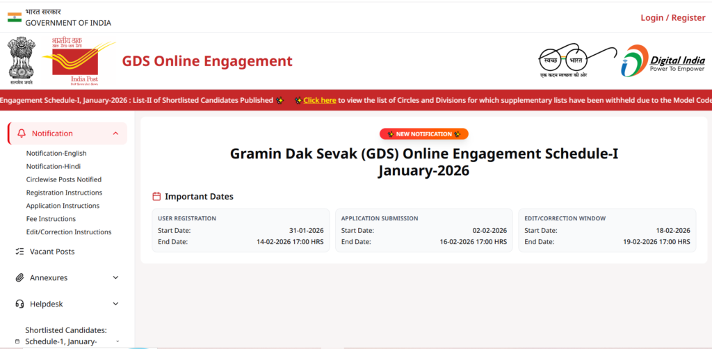 यदि आप GDS 2nd Merit List 2026 को चेक एवं डाउनलोड करना चाहते हैं, तो आप नीचे दिए गए सभी स्टेप्स को ध्यानपूर्वक फॉलो करे जो कि कुछ इस प्रकार से हैं –
