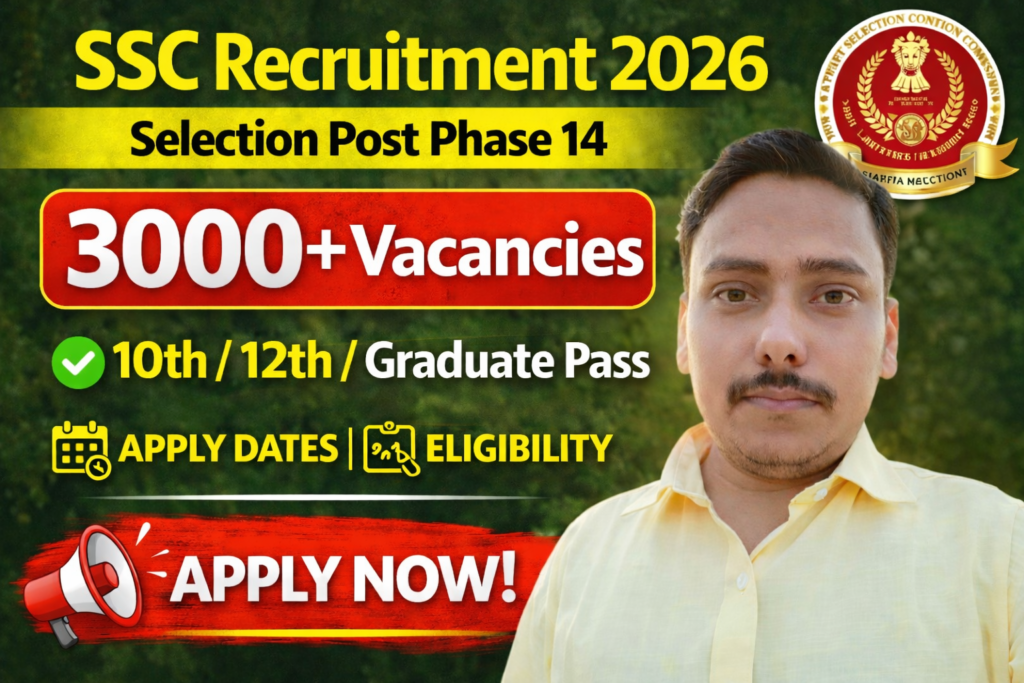 SSC Selection Post Phase 14 Vacancy 2026: क्या आपने कक्षा 10वीं, 12वीं या स्नातक की है और आप सरकारी नौकरी प्राप्त करना चाहते है, तो आपके लिए एक बहुत बड़ी खुशखबरी निकल कर आ रही है क्योंकि कर्मचारी चयन आयोग (SSC) की ओर से SSC Selection Post Phase 14 Vacancy 2026 के लिए आधिकारिक अधिसूचना जारी कर दी गई है जिसमें कि उम्मीदवार 13 अप्रैल 2026 से लेकर 04 मई 2026 तक ऑनलाइन आवेदन कर पाएंगे।