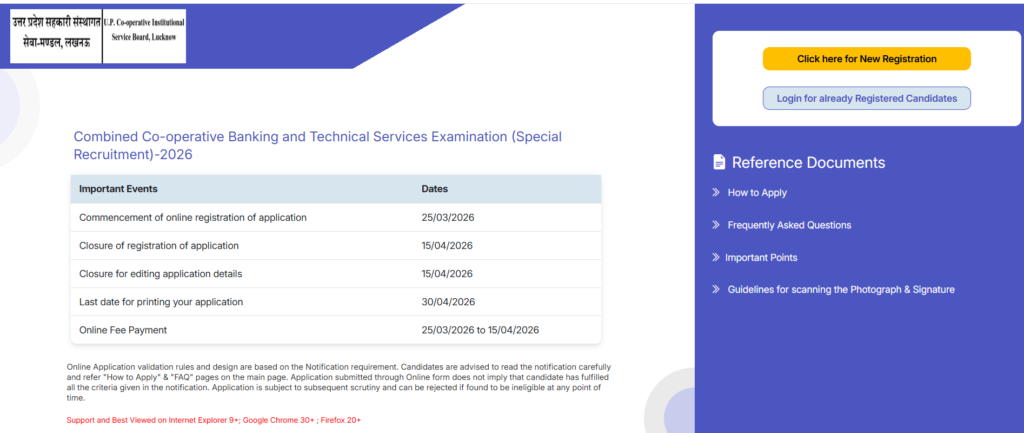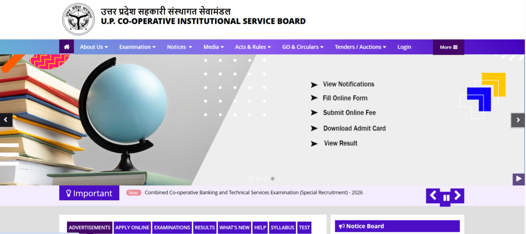 - होम पेज पर पहुंचने के बाद आपको ADVERTISEMENTS सेक्शन में आपको Combined Co-operative Banking & Technical Services Examination (Special Recruitment) – 2026 के लिंक पर क्लिक करना होगा।